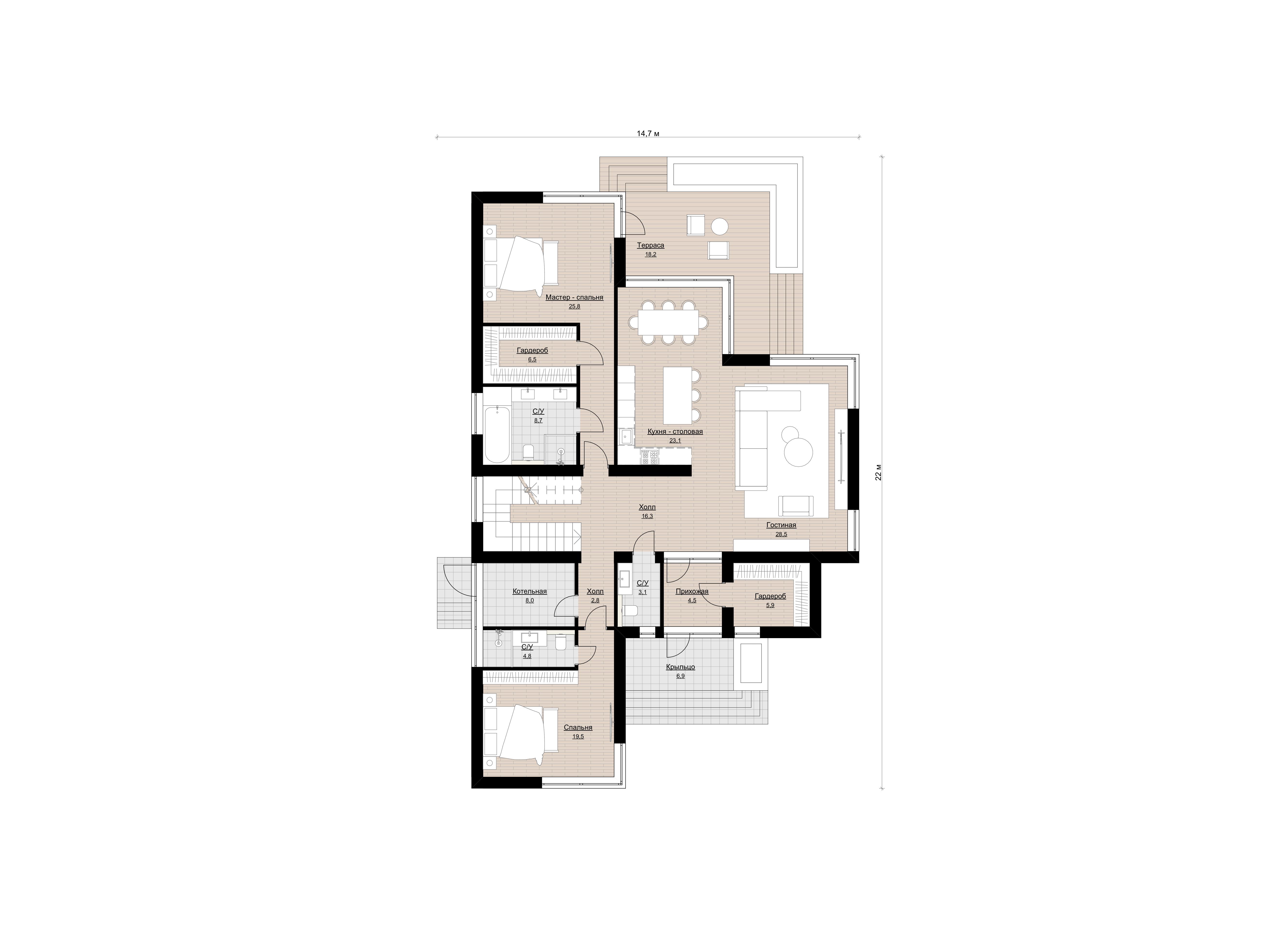 Размер дома 20.8 x 13.4 м