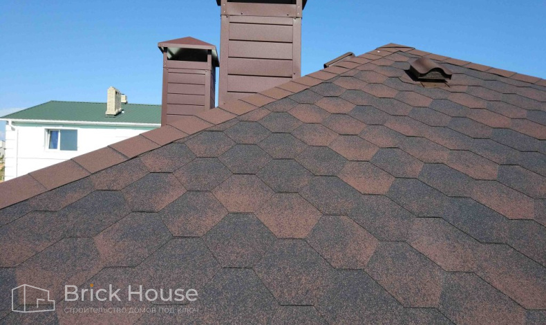 В качестве кровельного покрытия для двускатной крыши дома была выбрано мягкая черепица от финского производителя Katepal.