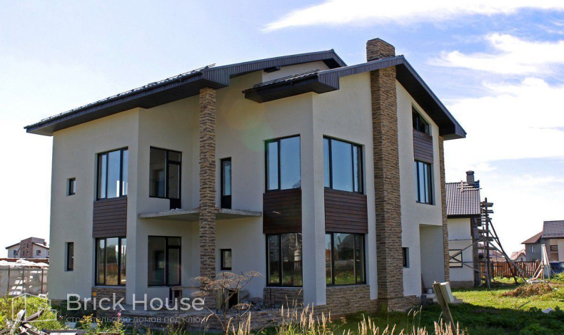 Дом возведен под чистовую отделку. Все стены дома оштукатурены, проведена электропроводка, а в некоторых комнатах произведен монтаж системы теплого пола. Мансардный этаж является единым помещением. К дому подведен водопровод, а также электричество и газ, есть канализация.