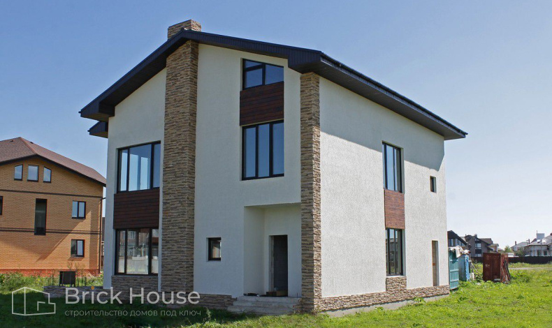 Площадь жилища - это внушительные 3 этажа и 320 квадратных метров площади. Поэтому для дома был выбран долговечный, прочный фундамент – свайно-ростверковый.