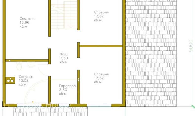 Общая площадь дома 164 м2. На первом этаже есть гостиная, совмещенная с кухней, спальня для гостей, и просторная терраса. кабинет и хозяйственные помещения. На втором этаже расположились 3 спальни, санузел и общий холл.