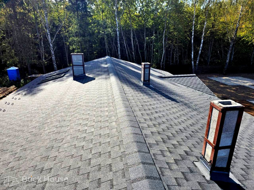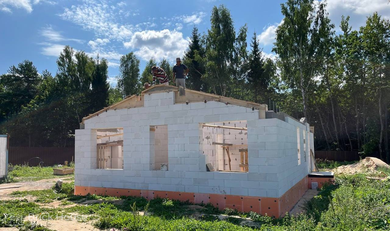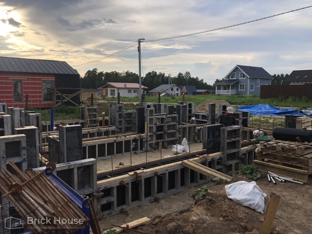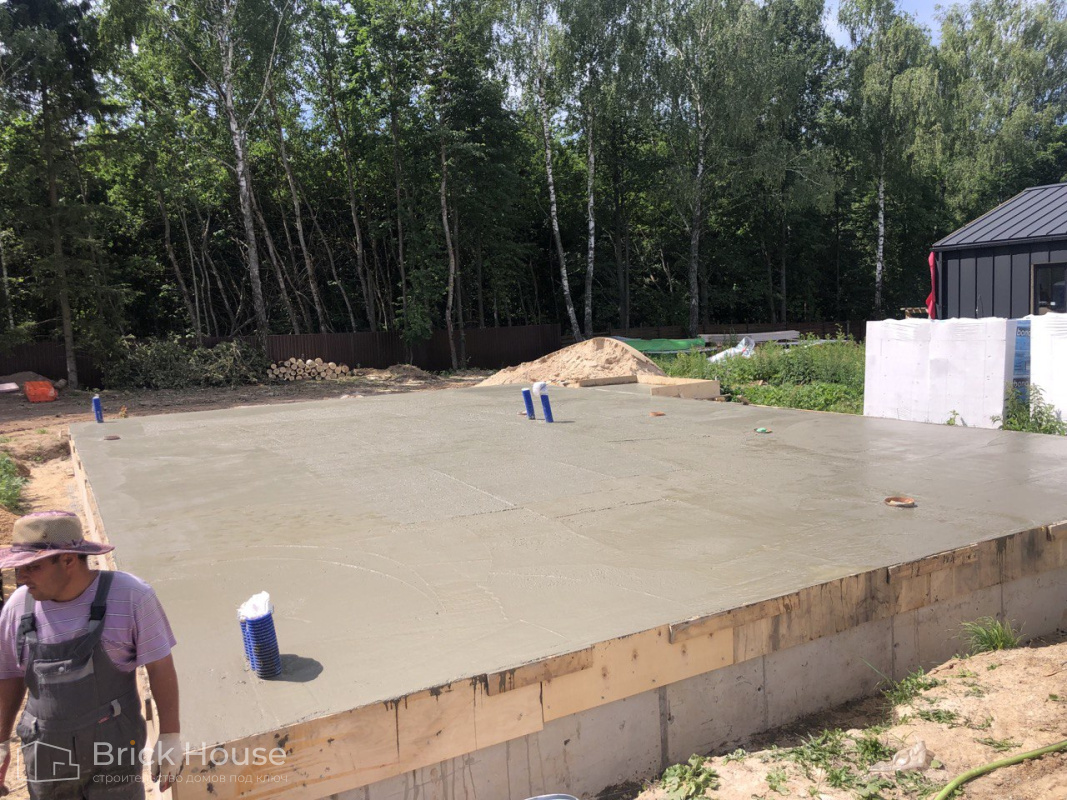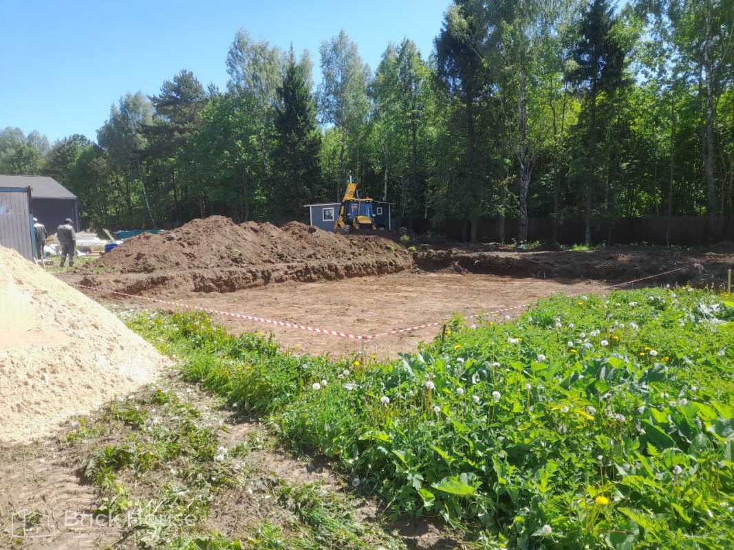 Наш первый объект, реализуемый по проекту K-100. Одноэтажный дом с кухней-гостиной, тремя спальнями, прихожей, гардеробной, двумя санузлами и бойлерной. На улице - 19-метровая терраса. Прекрасная альтернатива городской квартире. Тип фундамента на данном объекте - плита с ребрами жесткости. Стены из газобетонных блоков. Покрытие кровли - мягкая черепица. В отделке фасада использовали клинкерную плитку.