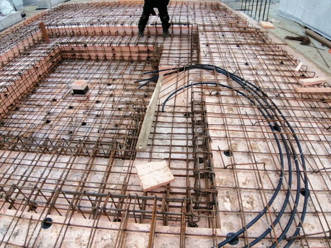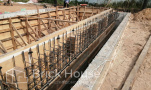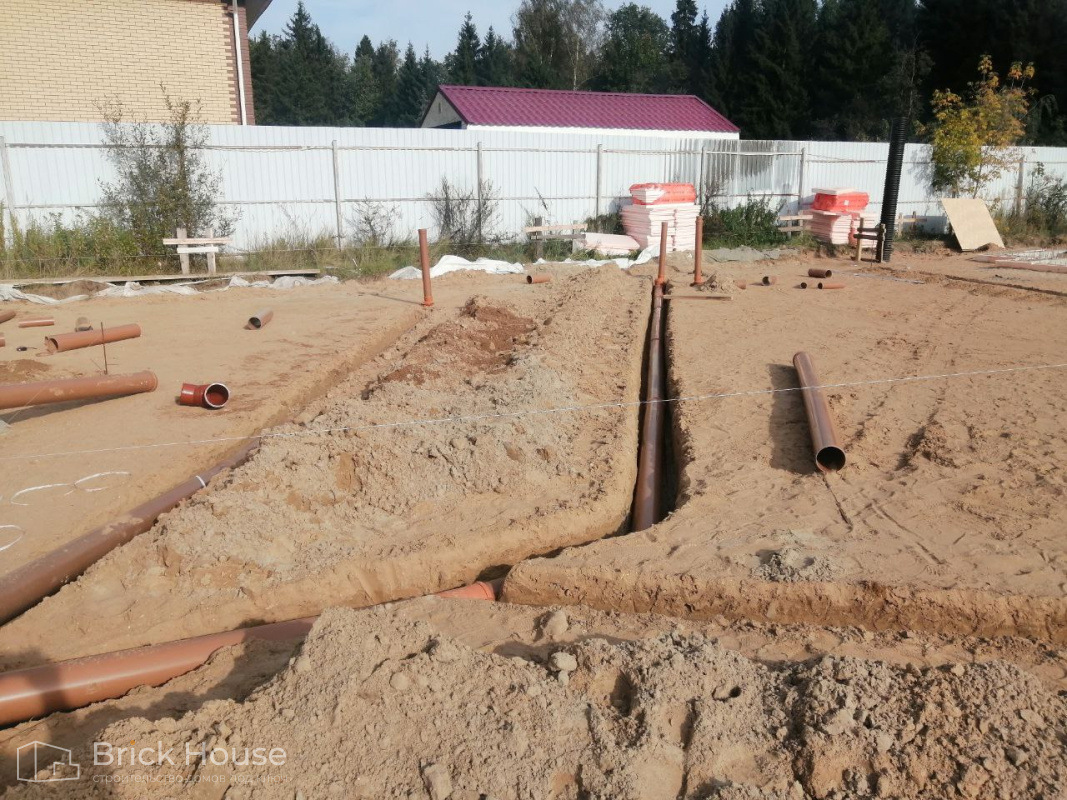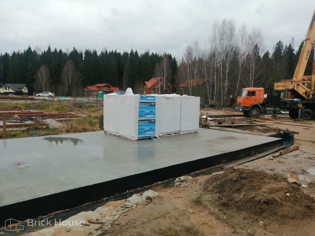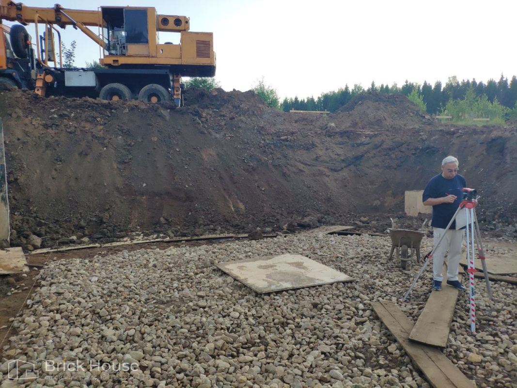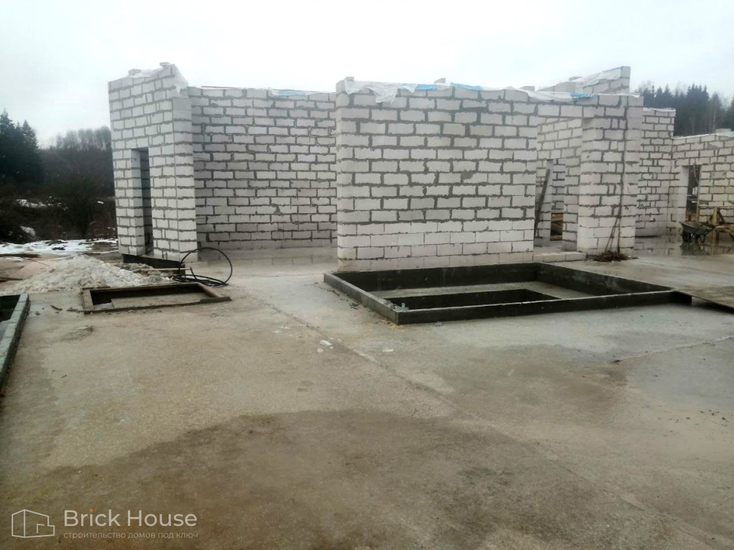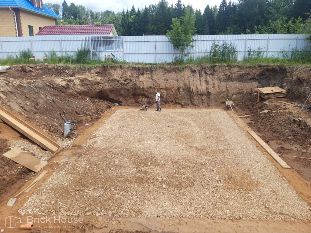 Масштабный и сложный проект одноэтажного дома в стиле хай-тек с уличным монолитным бассейном. Участок заказчика находится у реки, поэтому при рытье котлована под бассейн мы быстро вышли на уровень грунтовых вод. Чтобы осушить котлован, сделали дренаж и гидроизоляцию под основание чаши бассейна.