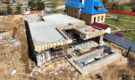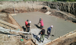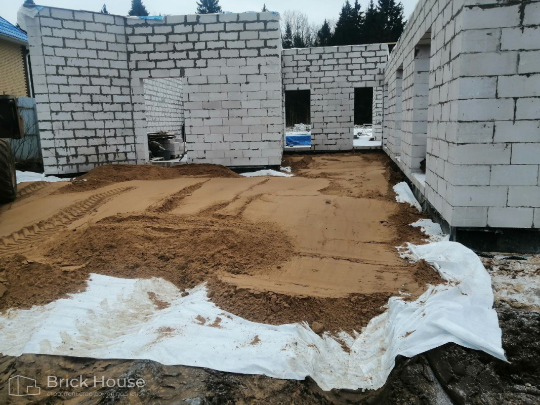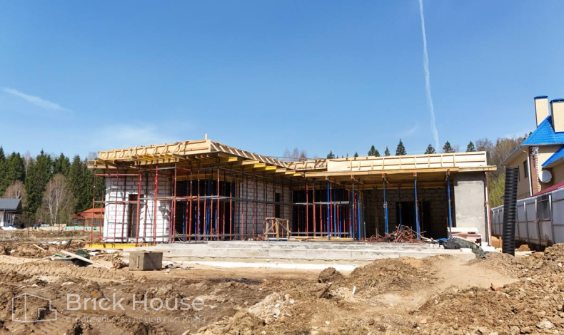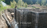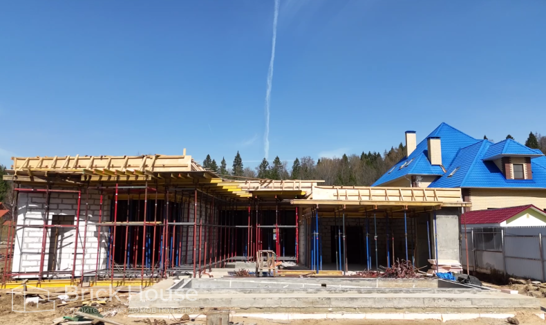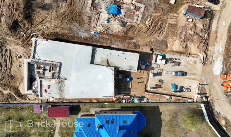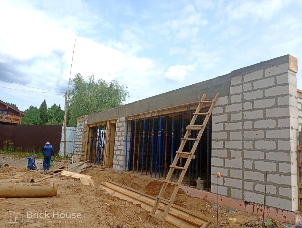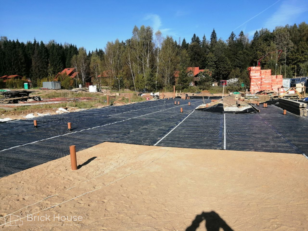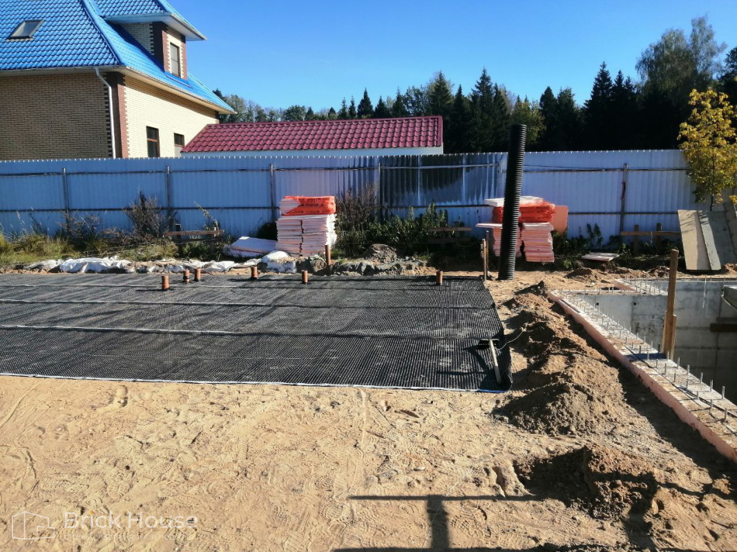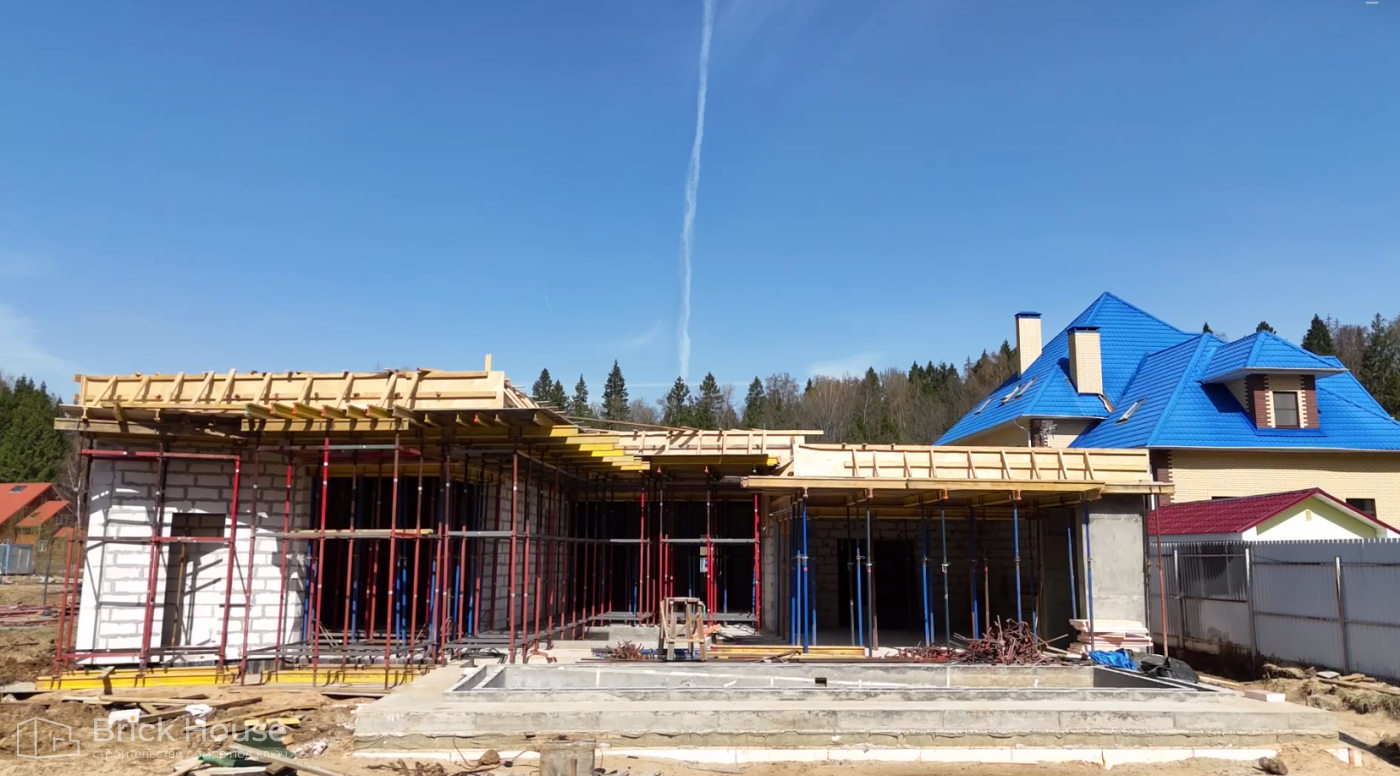 Масштабный и сложный проект одноэтажного дома в стиле хай-тек с уличным монолитным бассейном. Участок заказчика находится у реки, поэтому при рытье котлована под бассейн мы быстро вышли на уровень грунтовых вод. Чтобы осушить котлован, сделали дренаж и гидроизоляцию под основание чаши бассейна.