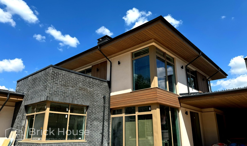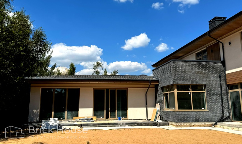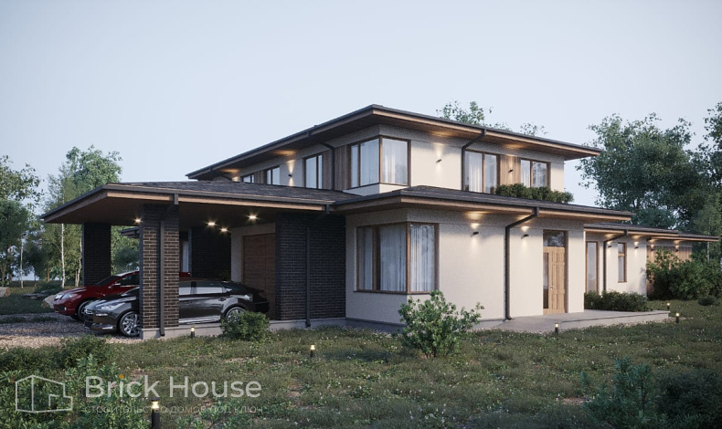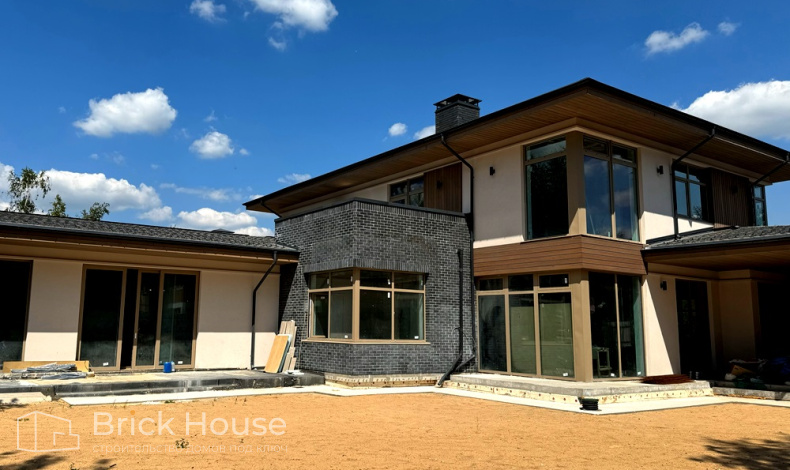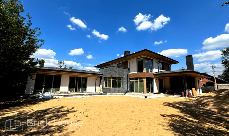 Большой уютный особняк в стиле Райта с бассейном – настоящая мечта для любой семьи. На 557 квадратных метрах разместились гостиная с камином, 4 спальни, игровая, кабинет, мастерская, сауна и хаммам. И еще несколько просторных помещений для хранения, предназначенных для продуктовых запасов и хозяйственного инвентаря.
