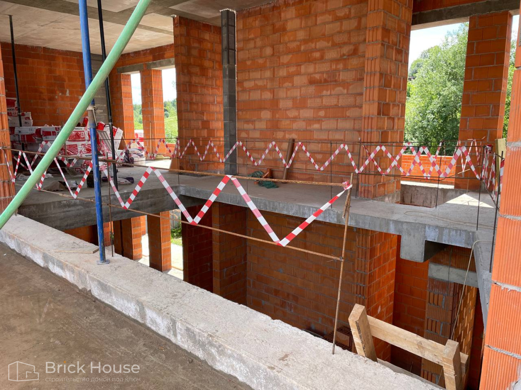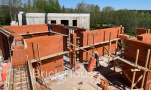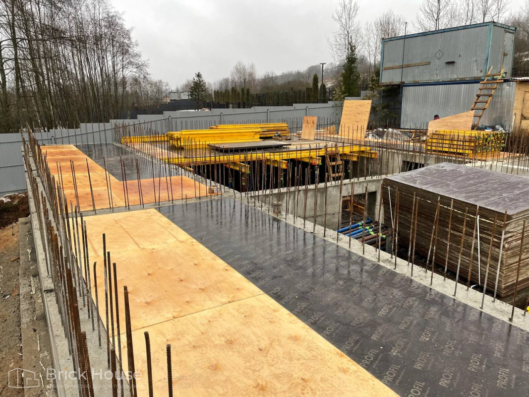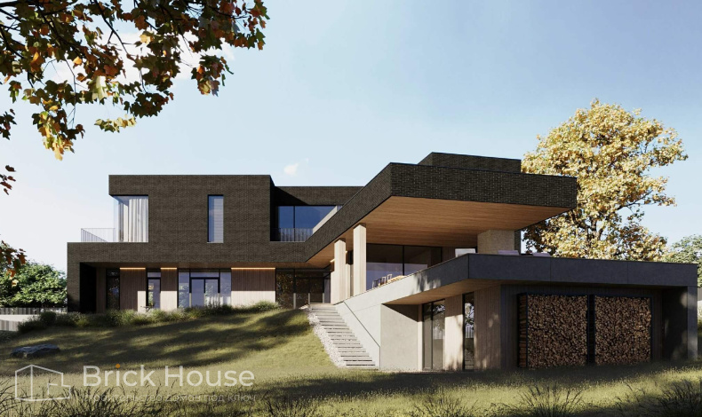 Двухэтажный дом с минус первым этажом для участка с перепадом высот. Земляные работы были осложнены близостью реки и грунтовых вод, которые подтапливали участок. Решить проблему помог дренаж по периметру участка. Из-за особенностей рельефа фундамент дома имеет несколько уровней. Перепад высот составил порядка 4 метров. Изюминка проекта - видовая терраса с консольной крышей и панорамным обзором.