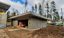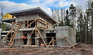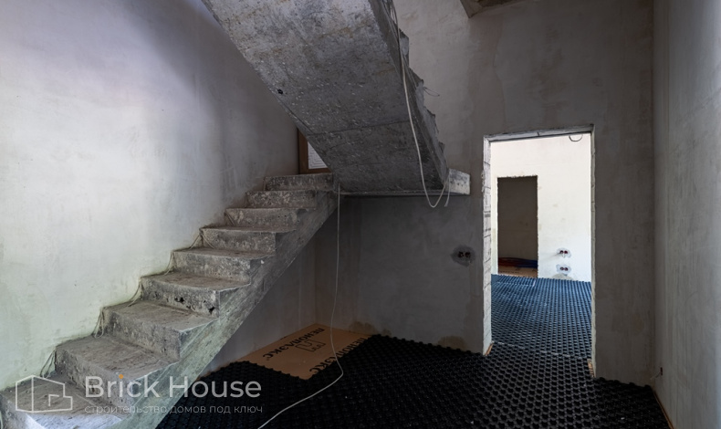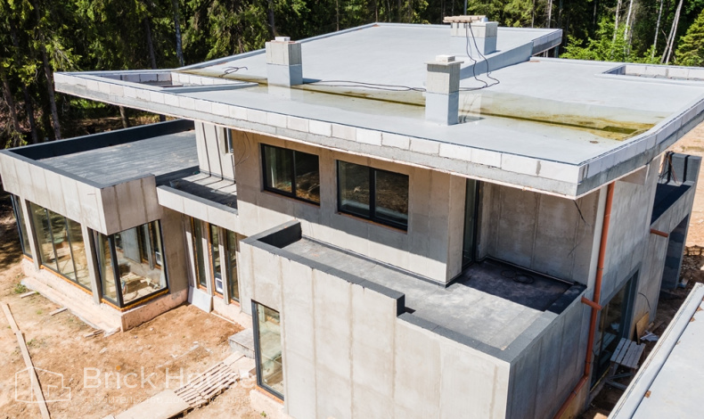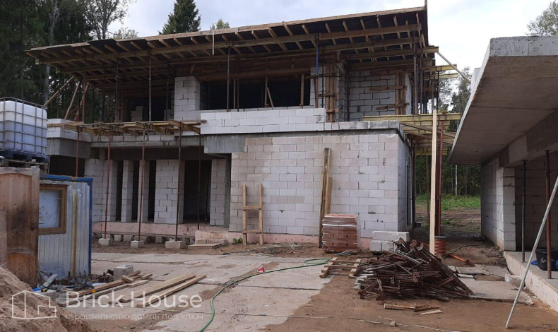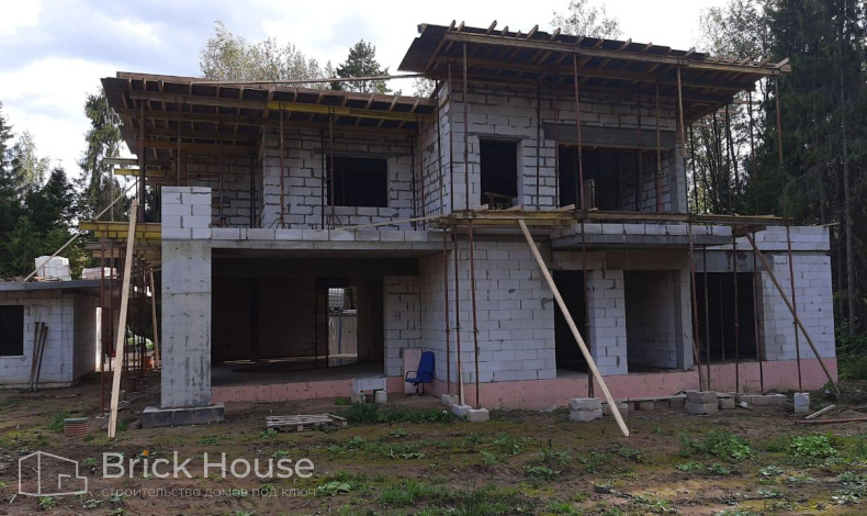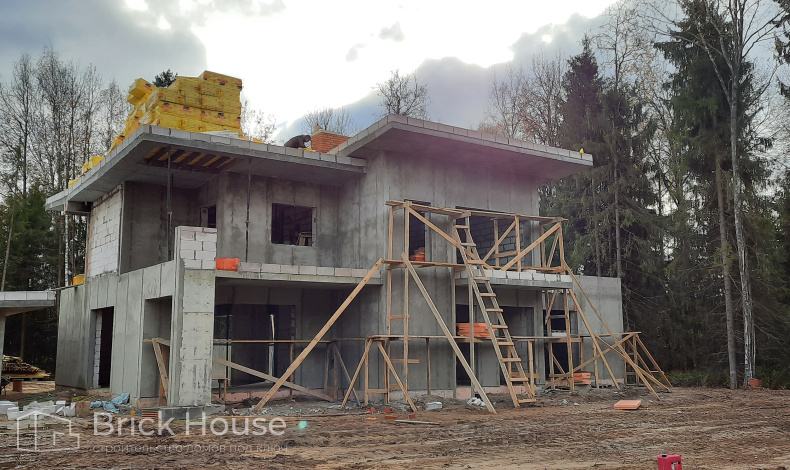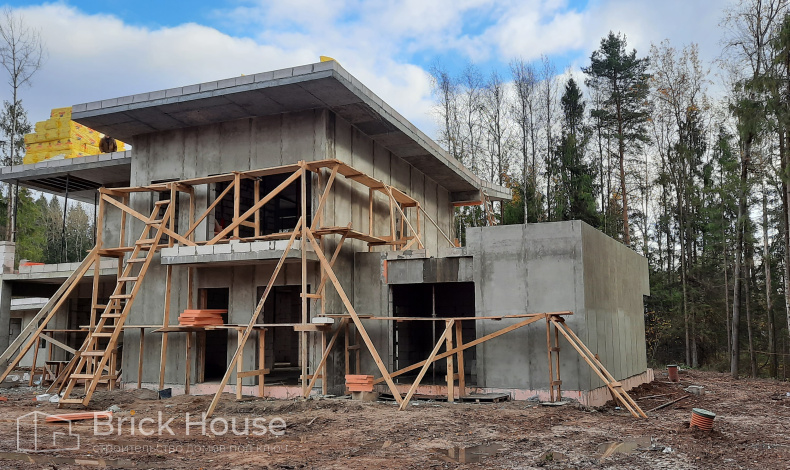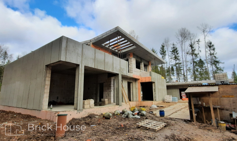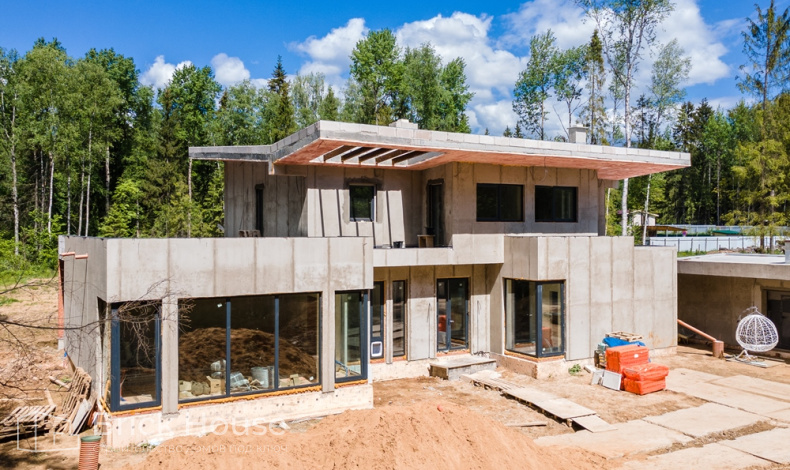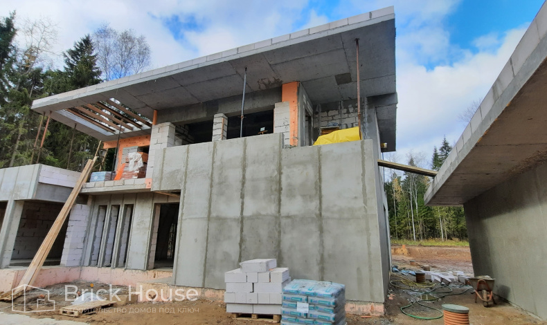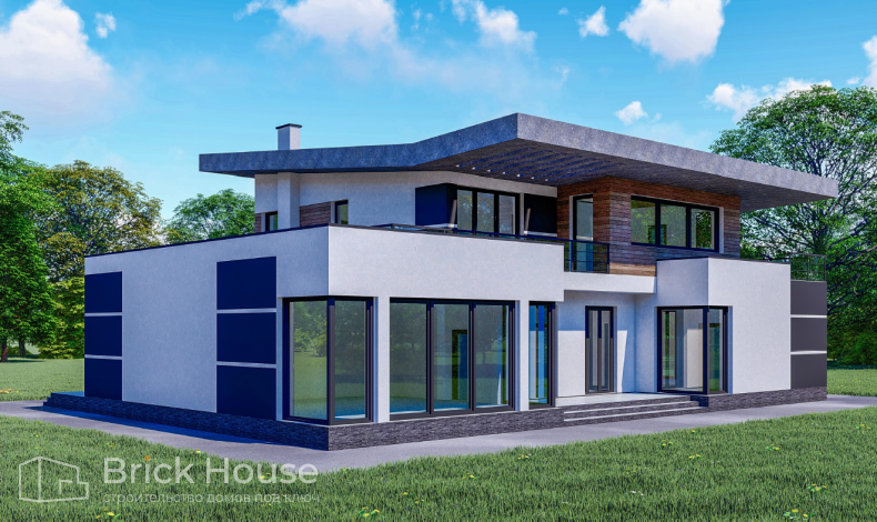 Это третий дом, построенный нашей компанией, по проекту Zx22. Эффектная отделка фасада, выполненная из дерева, штукатурки и рваного бетона делают его стильным и запоминающимся. Среди других достоинств дома – широкие террасы и большие балконы. Гараж вынесен в отдельное строение.