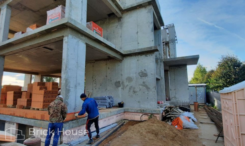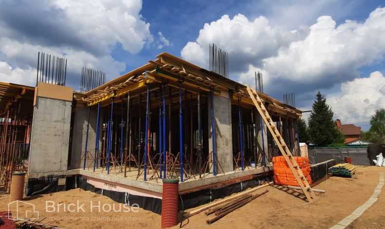 Осенью 2020 года в посёлке Черкизово мы залили фундамент с цокольным этажом, и уже весной приступили к строительству дома. В нем будет жить семья из нескольких поколений, поэтому в интерьере предусмотрено много помещений, в частности, две кухни и две гостиных.