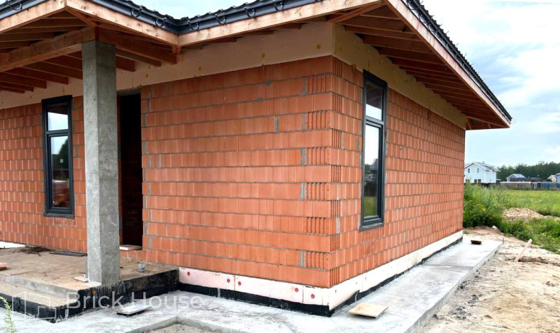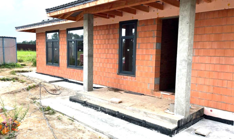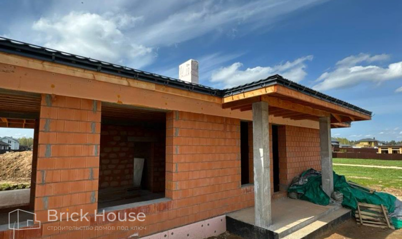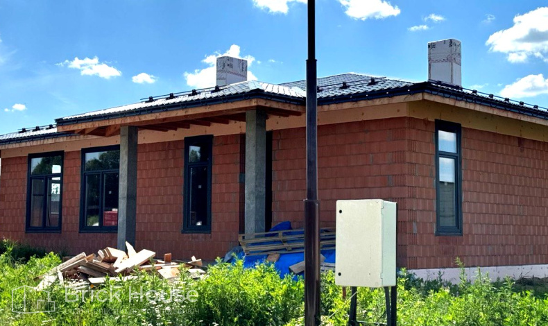 Одноэтажный дом в стиле флэтхаус – четвертый проект, который мы реализуем в поселке Грин Форест Клаб. Этот дом построен по стороннему проекту на монолитном фундаменте из керамоблока. Кровля скатная, покрытая металлочерепицей. По проекту в нем три спальни, кухня-гостиная-столовая, 2 санузла, прихожая и котельная. Из летних помещений – 18 метровая терраса под навесом и крыльцо