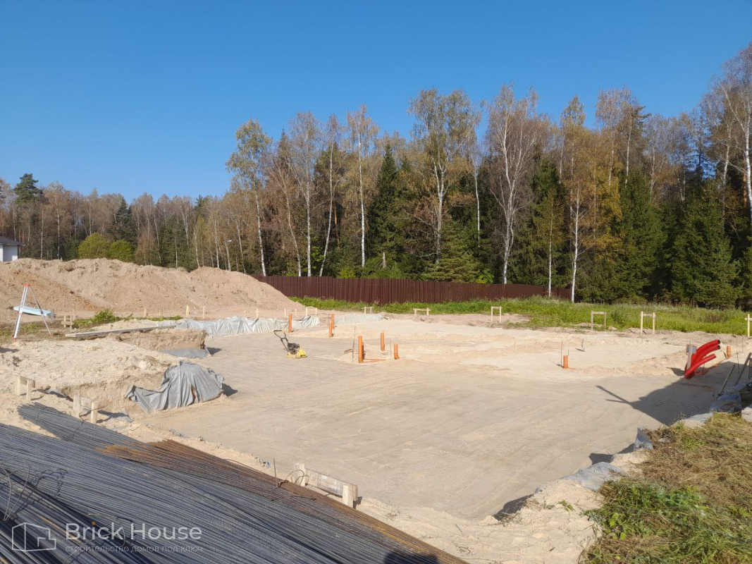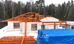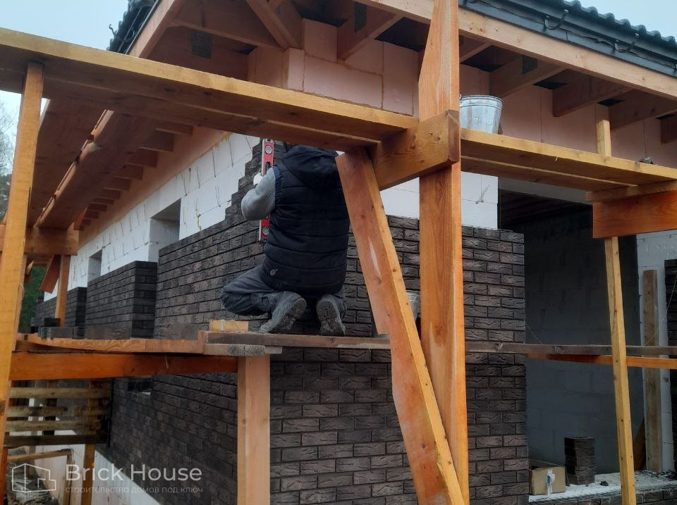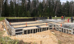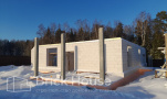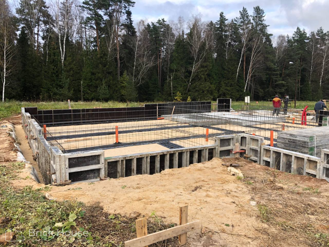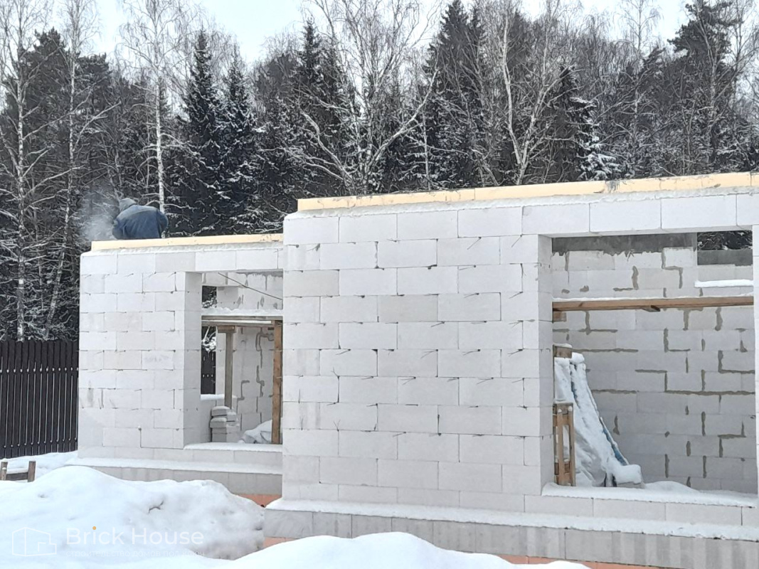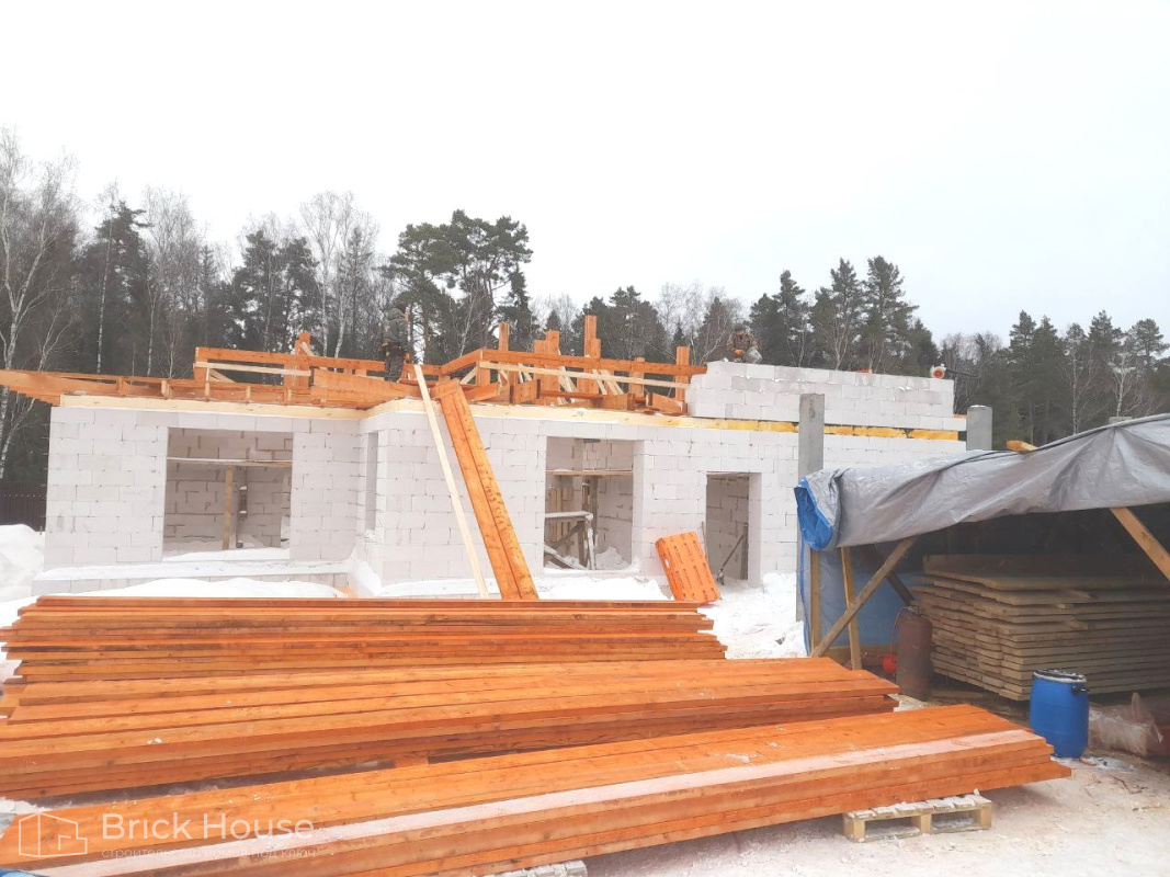 Это уже третий наш объект, который мы реализуем в коттеджном поселке Грин Форест Клаб. Одноэтажный жилой дом в классическом стиле с кухней-гостиной, 3 спальнями, небольшой парной и гаражом. Для данного объекта был выбран ленточный фундамент. Стены возведены из газоблока, фасад отделан облицовочным кирпичом. Кровля сложная – вальмовая - с покрытием цементно-песчаной черепицей.