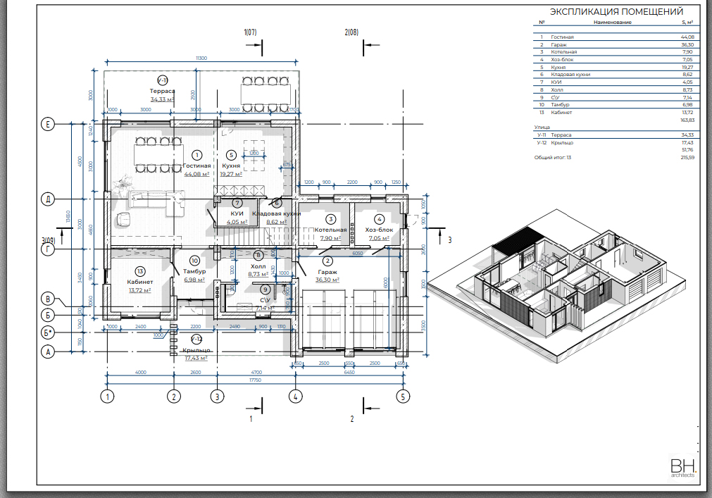 Размеры дома составляют 17,75 на 13,65 метров.