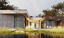 Дом по проекту имеет необычную форму, в виде буквы Н. В центре его будет большая общая зона свободной планировки с гостиной, столовой и кухней. Также в доме 4 спальни, кабинет, большая зона отдыха у бассейна и подсобные помещения. Рядом с домом - отдельностоящий гараж, спроектированный в одном стиле с домом.