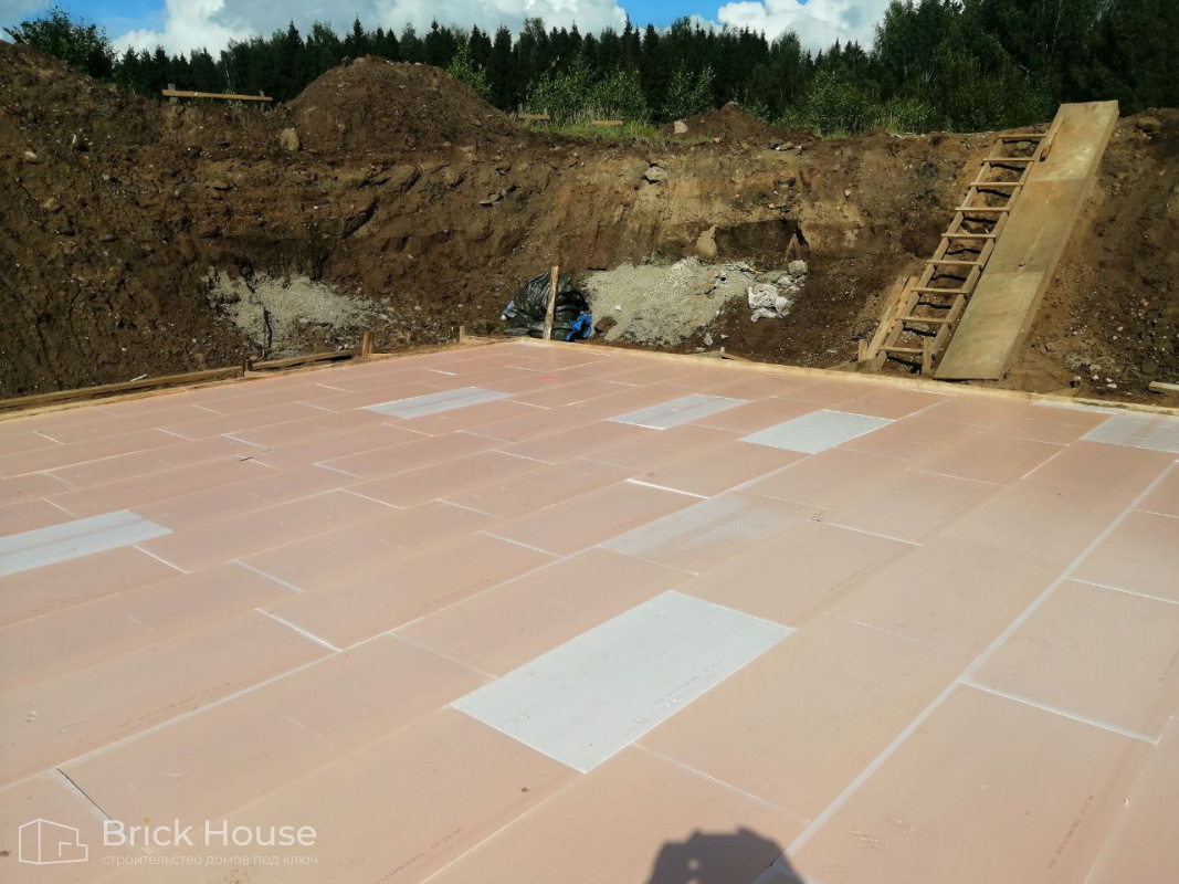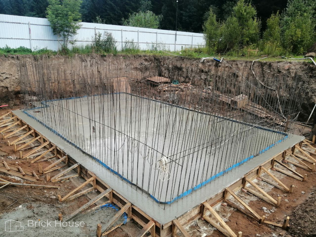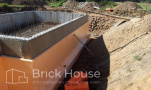 Масштабный и сложный проект одноэтажного дома в стиле хай-тек с уличным монолитным бассейном. Участок заказчика находится у реки, поэтому при рытье котлована под бассейн мы быстро вышли на уровень грунтовых вод. Чтобы осушить котлован, сделали дренаж и гидроизоляцию под основание чаши бассейна.