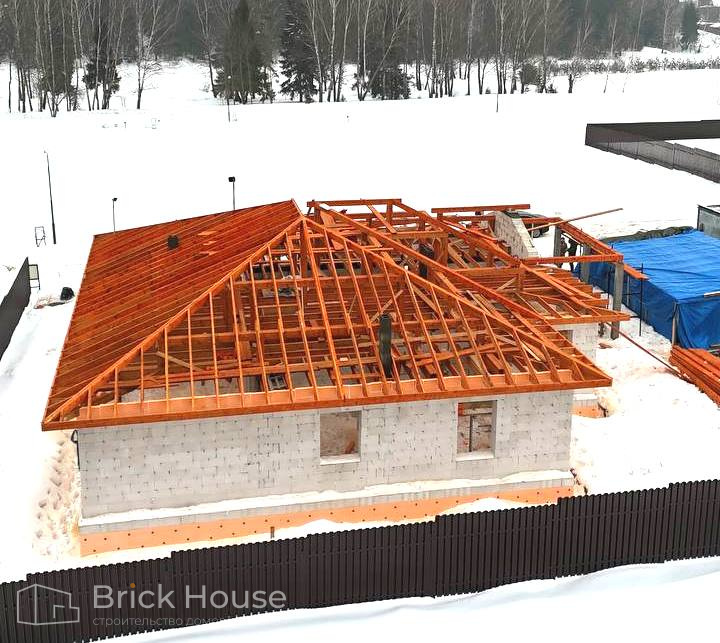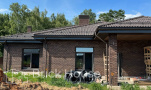 Это уже третий наш объект, который мы реализуем в коттеджном поселке Грин Форест Клаб. Одноэтажный жилой дом в классическом стиле с кухней-гостиной, 3 спальнями, небольшой парной и гаражом. Для данного объекта был выбран ленточный фундамент. Стены возведены из газоблока, фасад отделан облицовочным кирпичом. Кровля сложная – вальмовая - с покрытием цементно-песчаной черепицей.