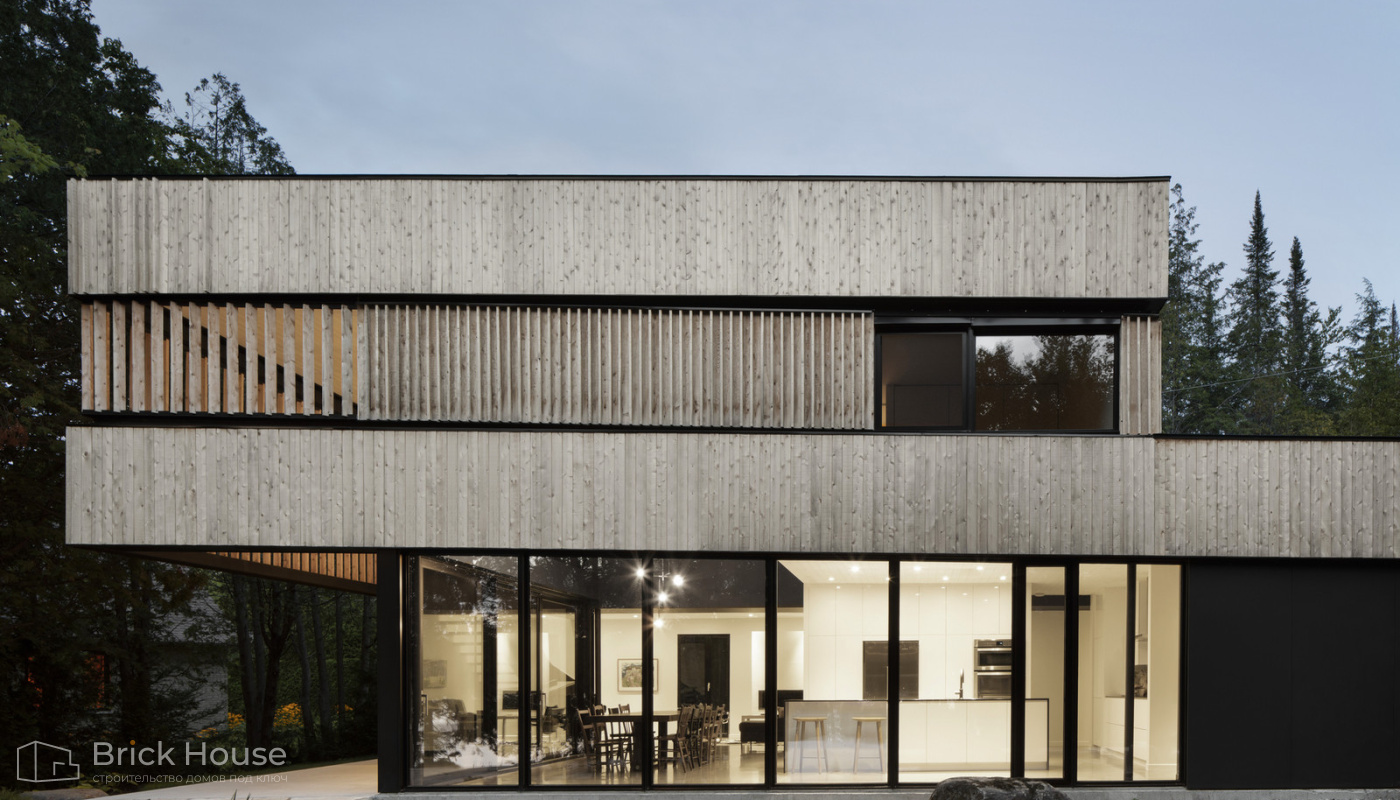 Технологии строительства позволяют возводить современные дома с панорамным остеклением под ключ. За счет полимерной мембраны, а также системы отвода влаги стены защищены от протечек. Заполнение аргоном алюминиевых или ПВХ профилей не дают теплу уходить.